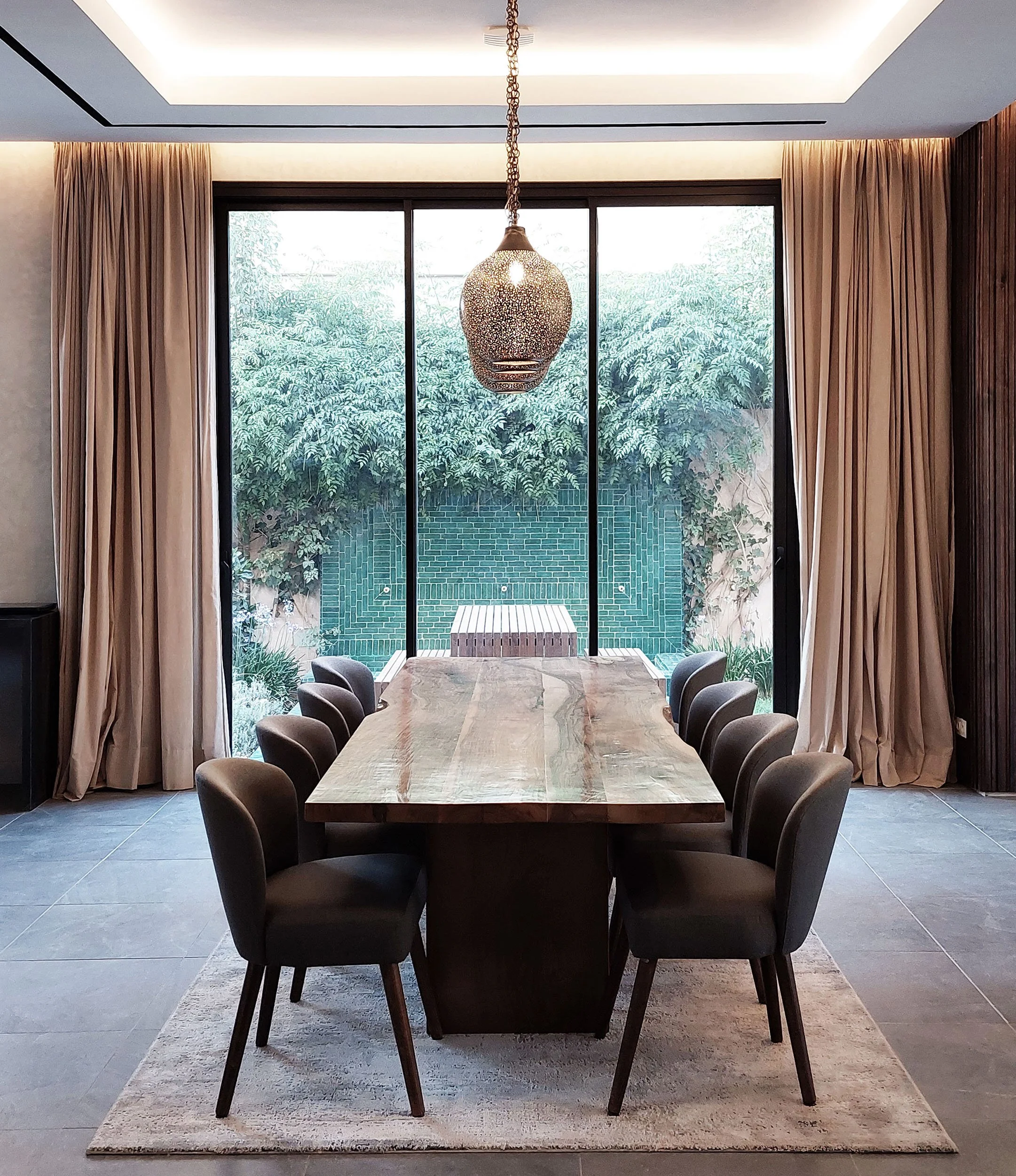 La Maison AA s’ouvre largement sur les montagnes du Haut Atlas grâce à ses percées visuelles. Elle s’inspire de l’architecture vernaculaire des villages de montagne, en réinterprétant leur simplicité et leur ancrage dans le site. L’usage de matériaux locaux et de lignes épurées crée un dialogue entre tradition et habitation contemporaine.